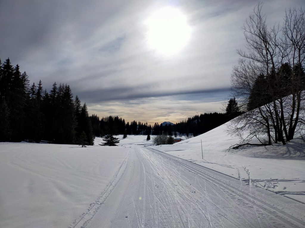Il fait -1°c au col de la Croix Fry, la température de la neige dans les traces est de -10°c.