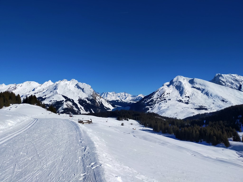 Une belle journée s’annonce, il fait -6°c au col de la Croix Fry et la température de la neige est de -16°c dans les traces.