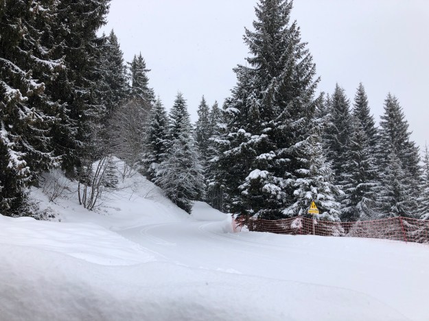 Entre dix et quinze cm de neige fraîche depuis ce matin. Il fait zéro degrés, sans vent, il continue à neiger.
